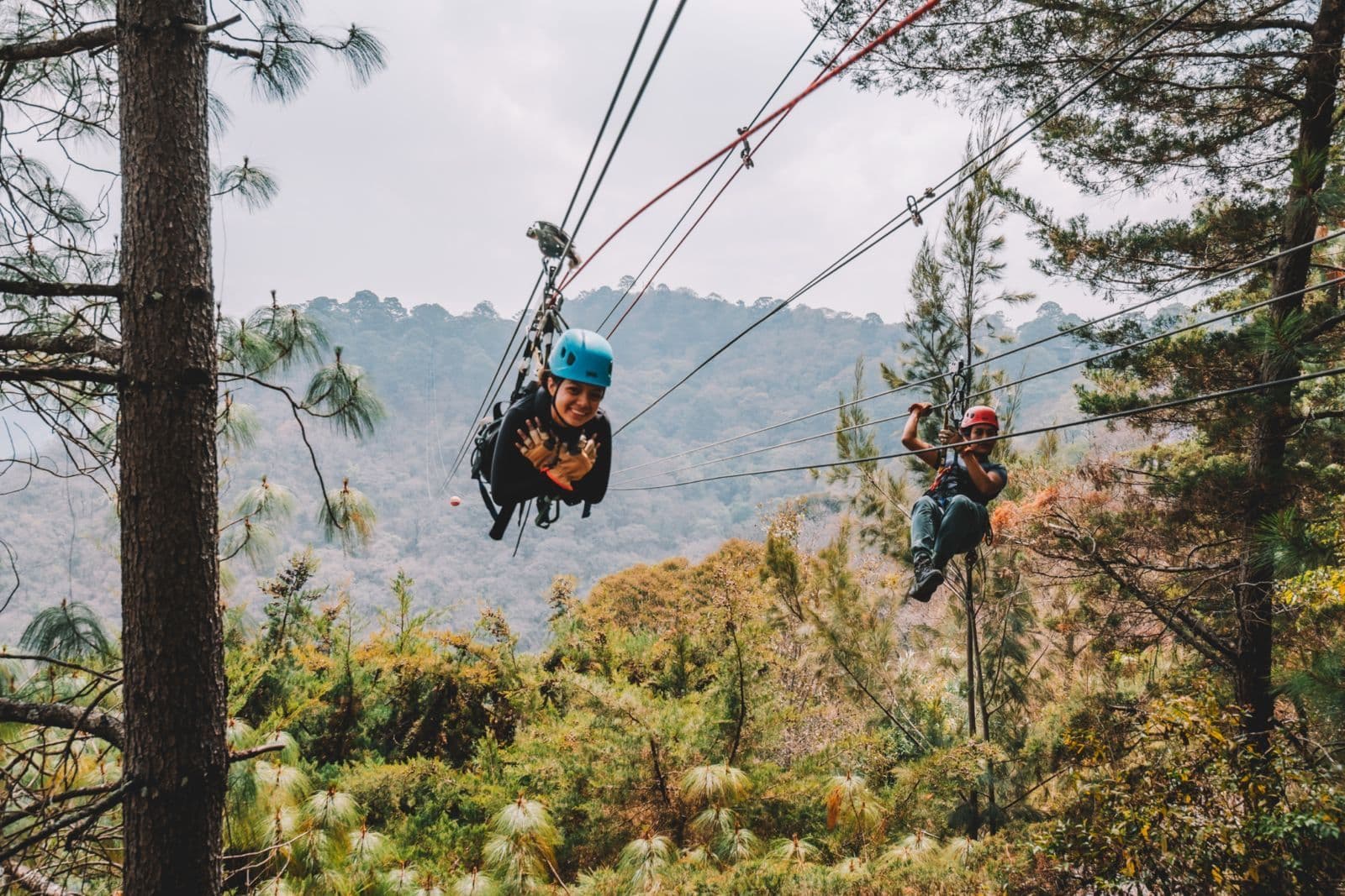 Experience breathtaking panoramic views of Antigua Guatemala's stunning landscapes from high above the treetops. Marvel at the lush greenery, majestic mountains, and picturesque valleys that surround you as you glide through the canopy.