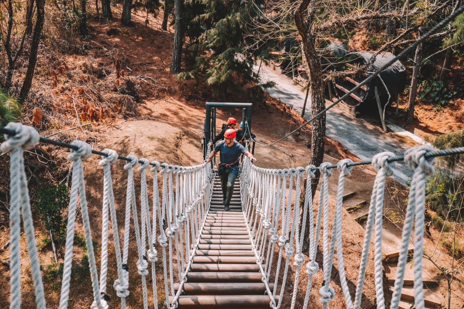 - 2 hanging bridges that test your balance and immerse you in the treetop canopy.