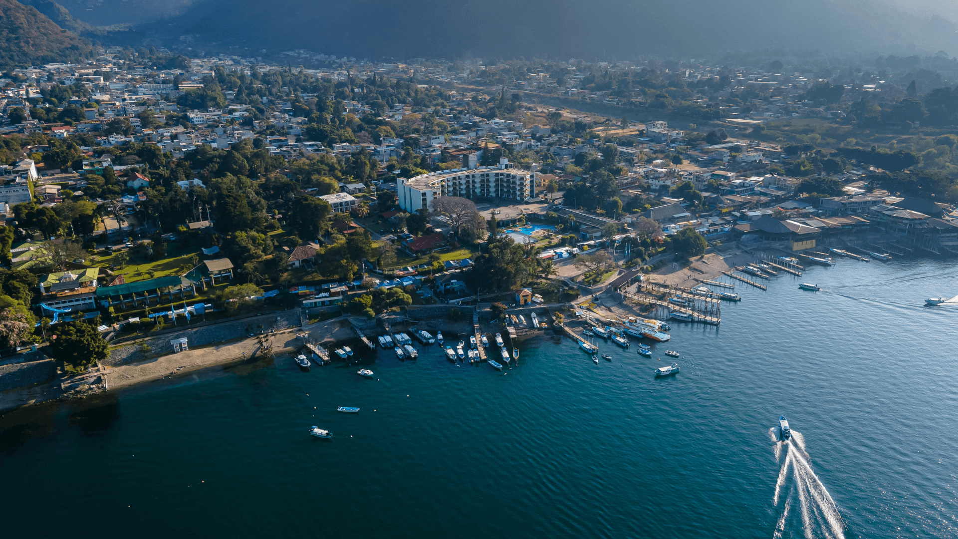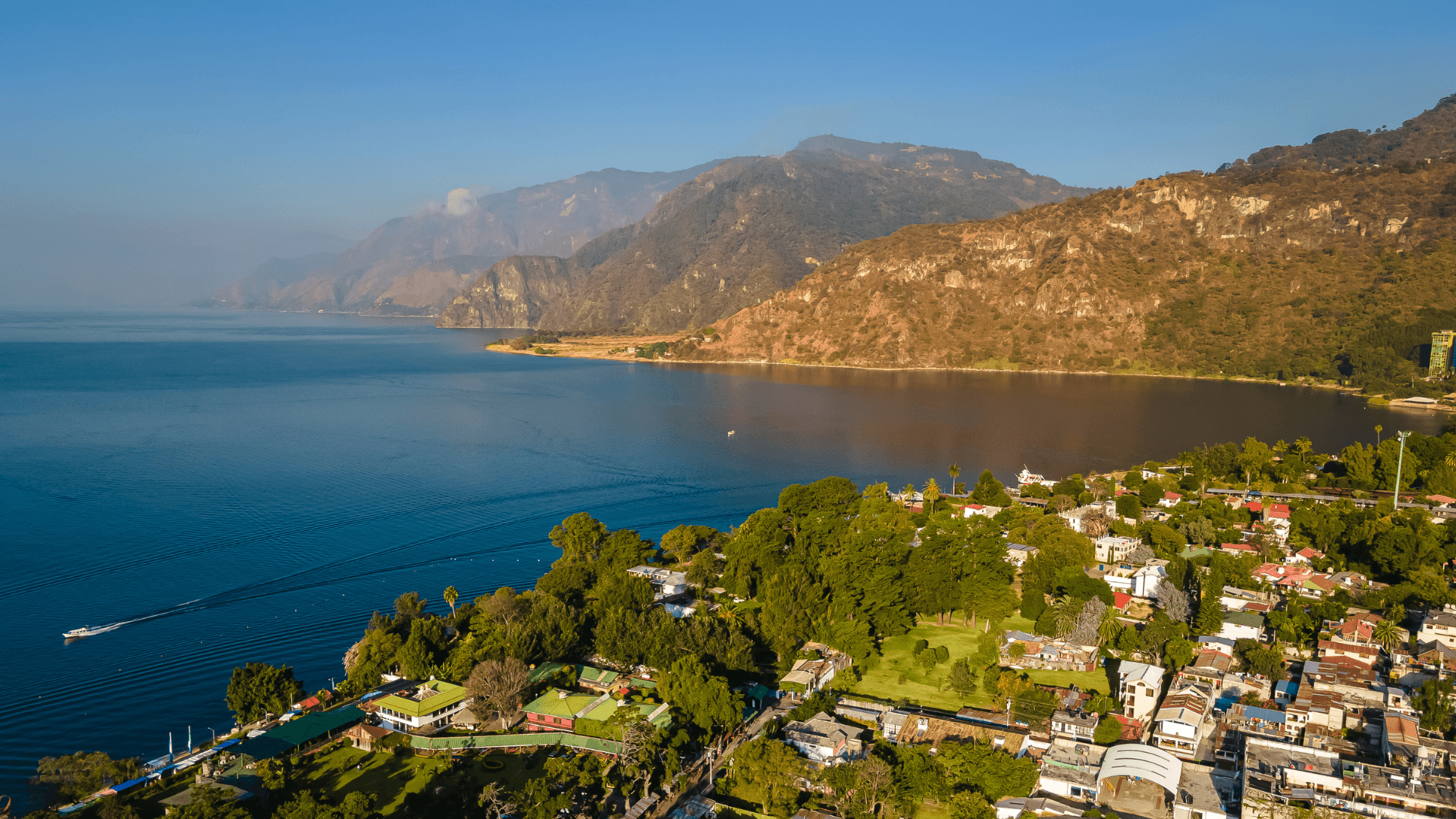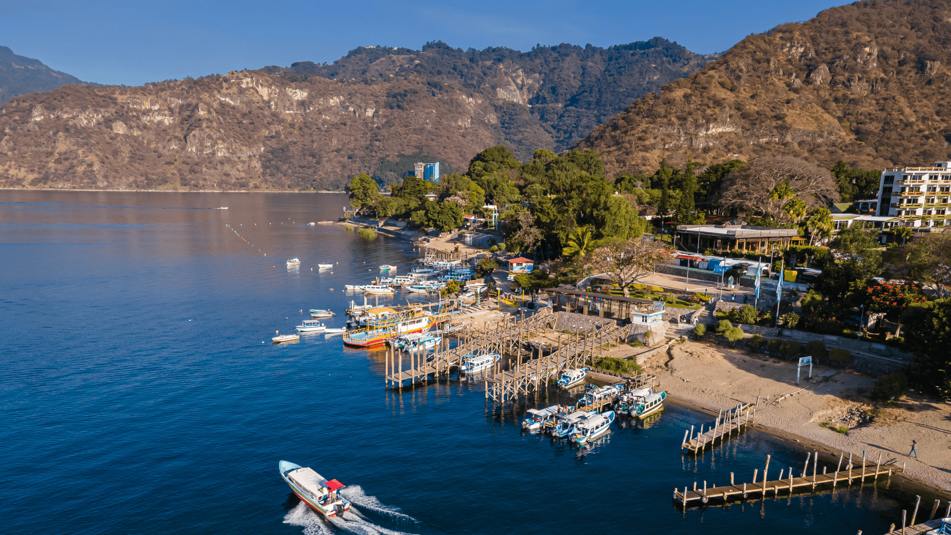 Arriving in the vibrant lakeside town of Panajachel, we make our way to the local dock, where our private boat awaits. Set against volcanic peaks, we board our vessel, ready to explore the lake’s beauty and cultural treasures.
